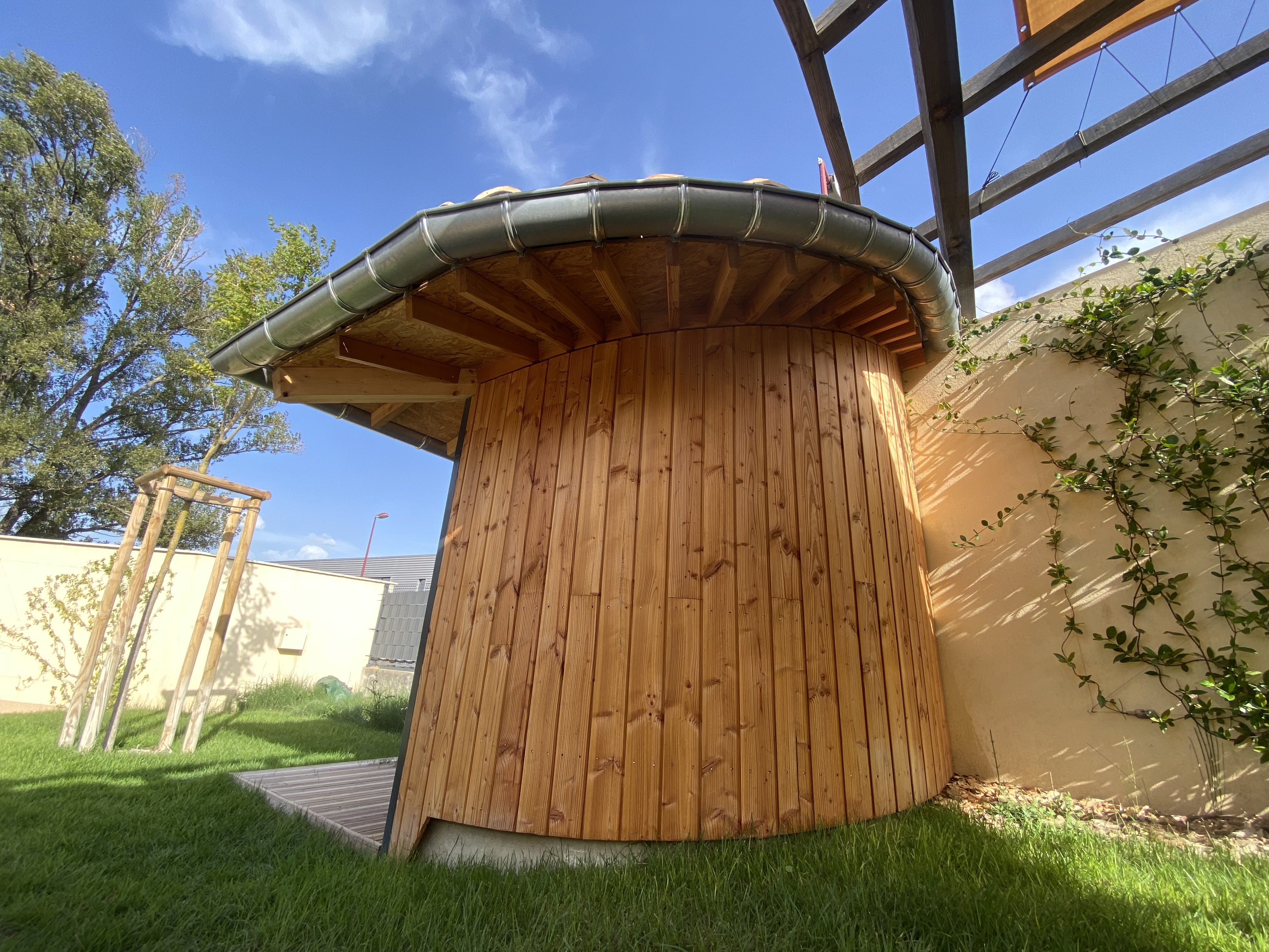 Cabanon pour une crèche Montessori 18/09/2024 Imprimer Partager Facebook Twitter Petit cabanon arrondi dans le jardin de la crèche montessori à sablet